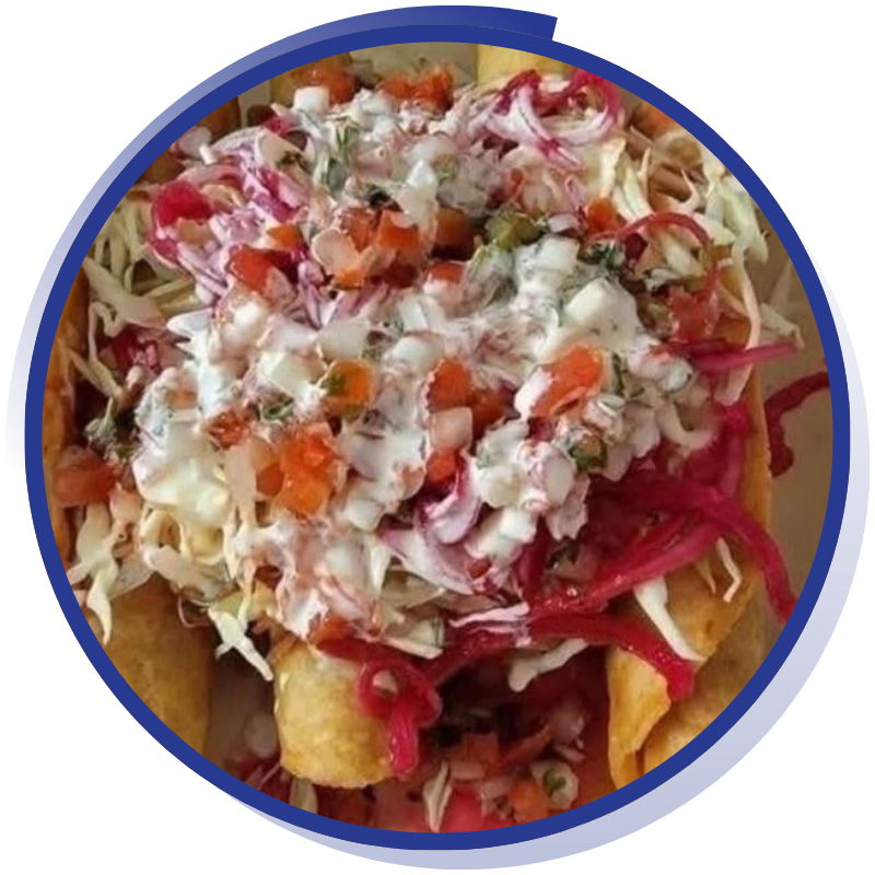 Crispy, rolled tortillas filled with savory ingredients, fried to a golden brown, and served hot and crunchy.